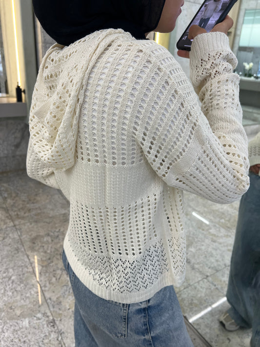 Hooded Light Knit Top: Off White