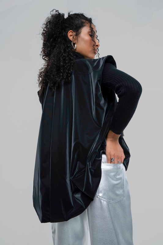 Collared Leather Jacket in Black