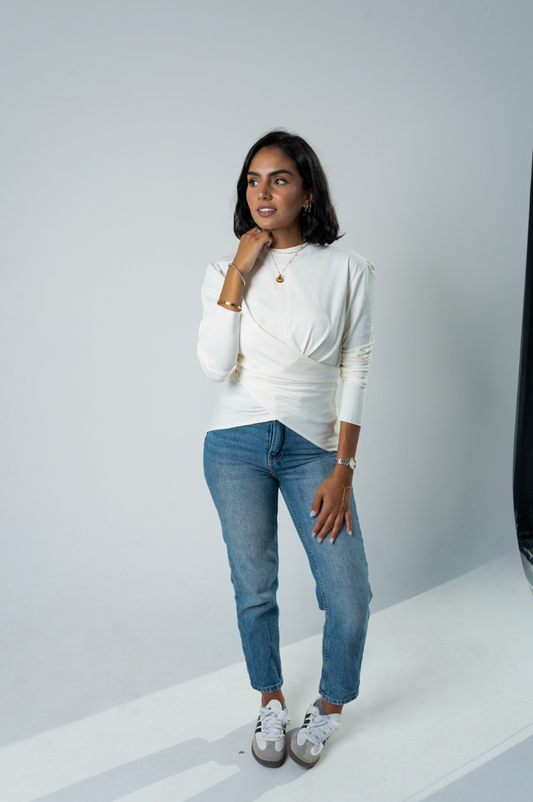 Wrap Cotton T-shirt: Off White/Créme