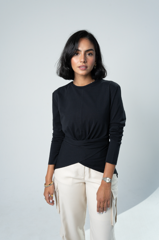 Wrap Cotton T-shirt: Black