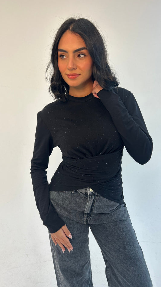 The Studded Wrap Cotton T-shirt: Off White/Créme