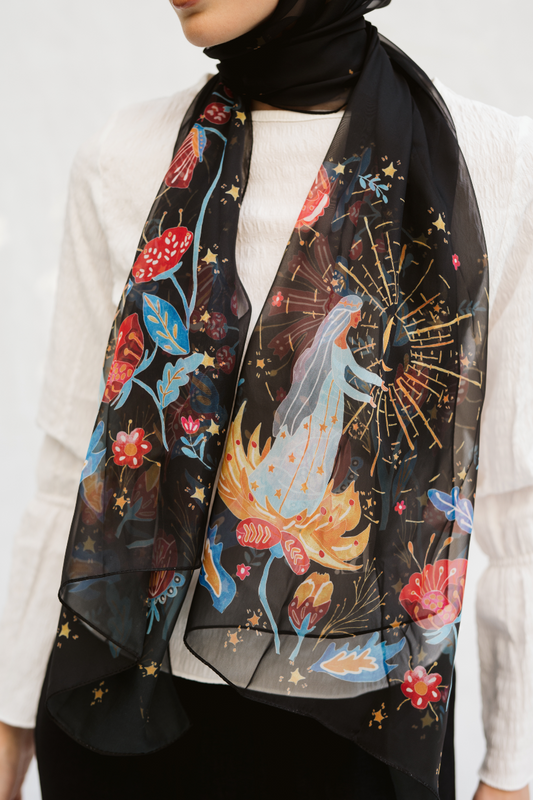 Light-weight, translucent, soft & flowy crepe chiffon.