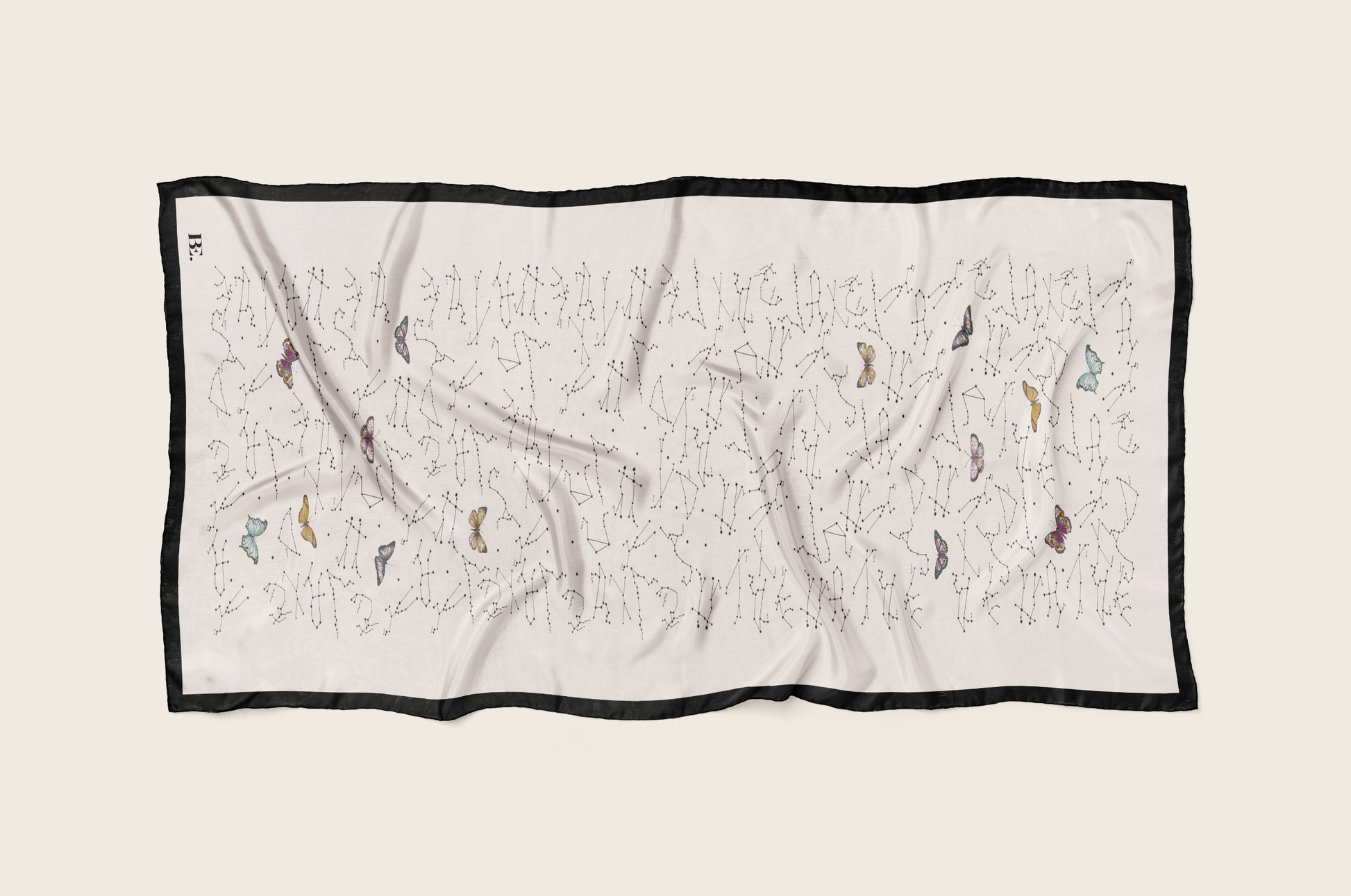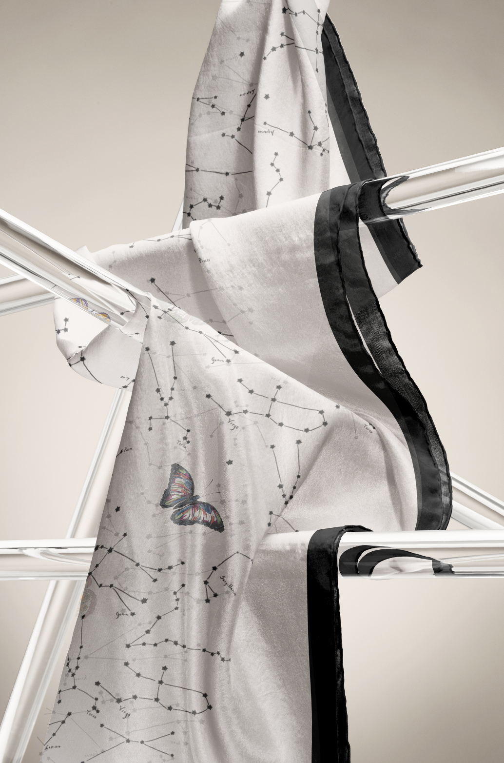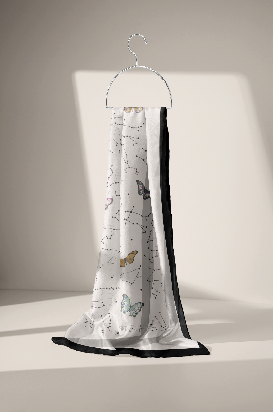 Indulge in luxury with Fly Away. This zodiac-inspired scarf brings positivity for a brighter future, beautifully represented by delicate butterflies. Embrace the power of change and let this exquisite accessory elevate your style and mindset.