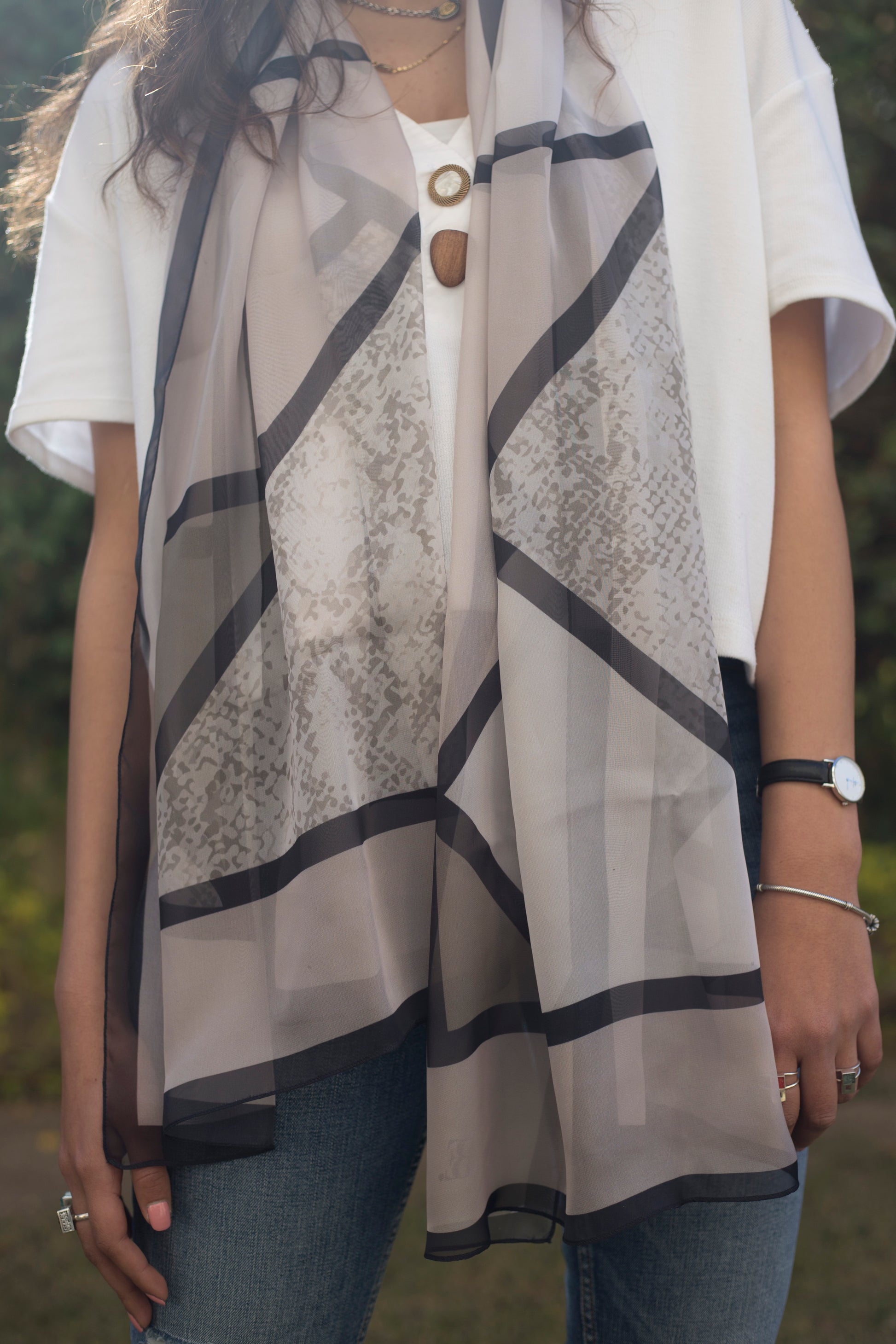 The scarf you need for a sleek look, with an edge of animal print and a touch of olive to keep you trendy and elegant.